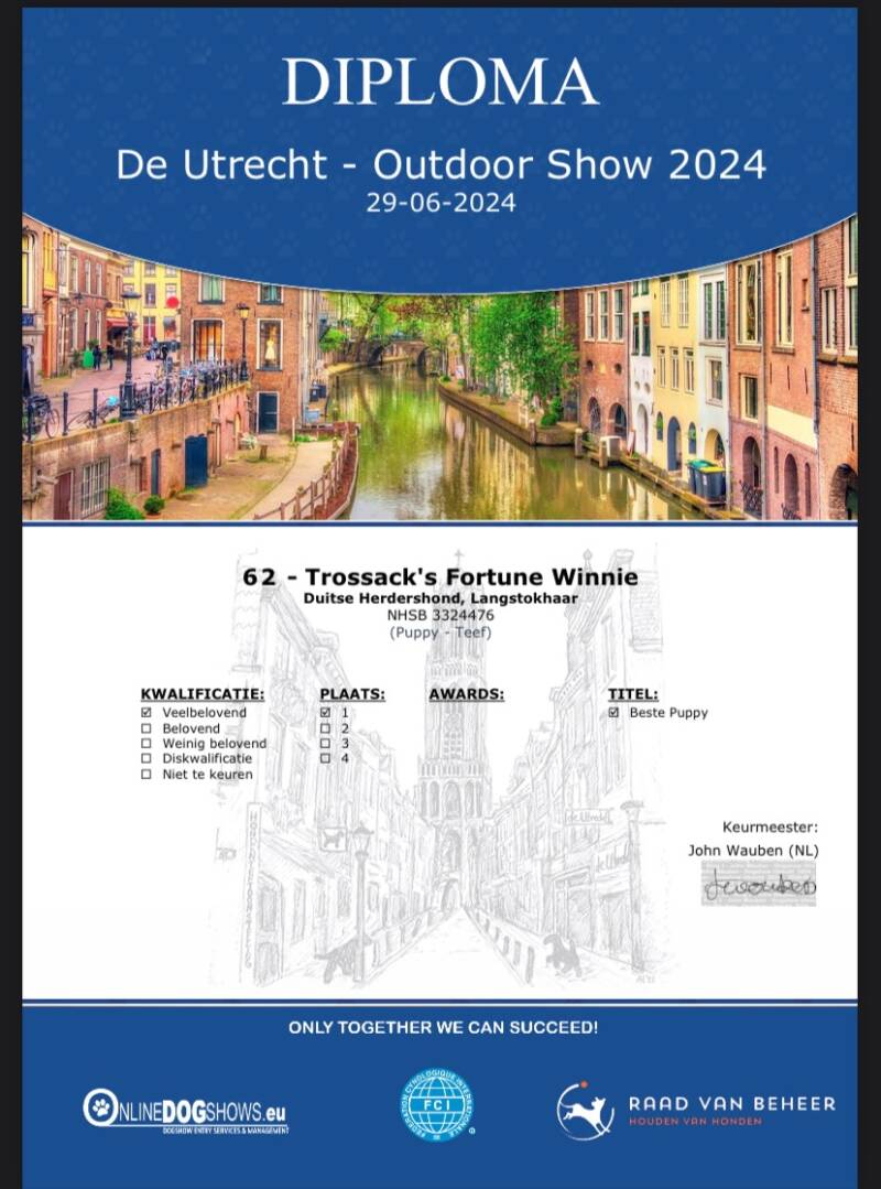 op 29 juni waren wij bij de outdoor show in Arnhem en Nia behaalde daar in de puppy klasse: